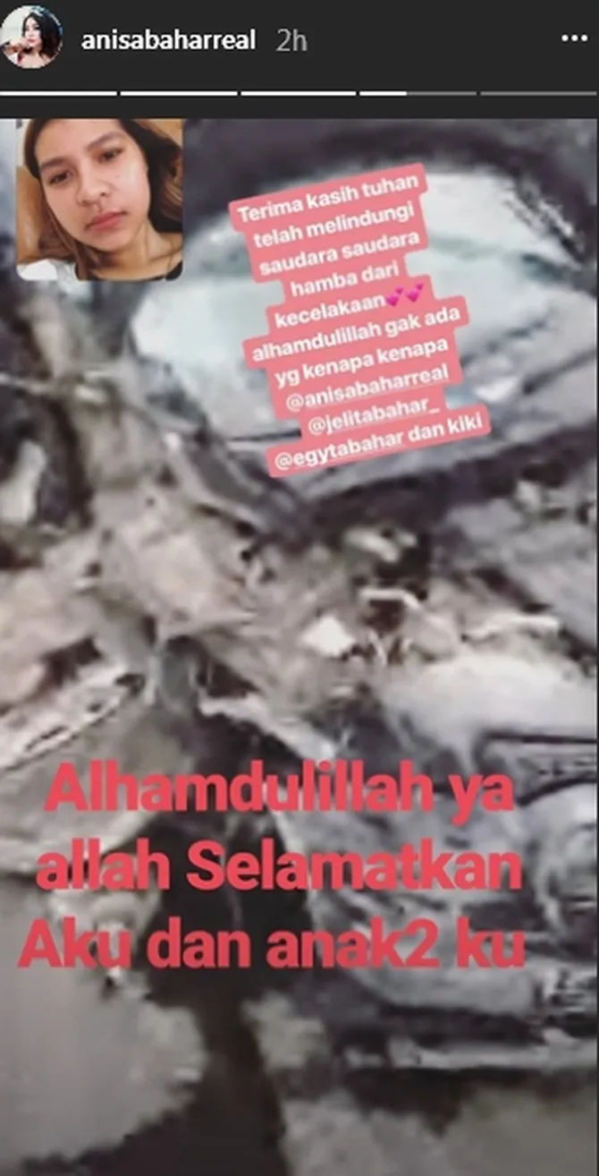Annisa Bahar baru saja mengalami kecelakaan yg mengerikan di jalan tol. Mobilnya ringsek berat, namun tak ada korban jiwa dalam kecelakaan yg terjadi Selasa, (5/6) siang. Kala kejadian berlangsung, Annisa sedang bersama sopir, Jelita Bahar Egyta Bahar dan Al Rizky.