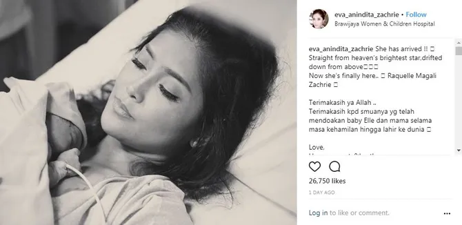 Eva pun tentu merasa bersyukur atas kelahiran bayi mungil yg ia panggil dengan nama baby Elle tersebut. Rasa syukur dan kebahagian pun tidak lupa juga ia ungkapkan dalam sebuah tulisan yg ia unggah melalui akun instagram.