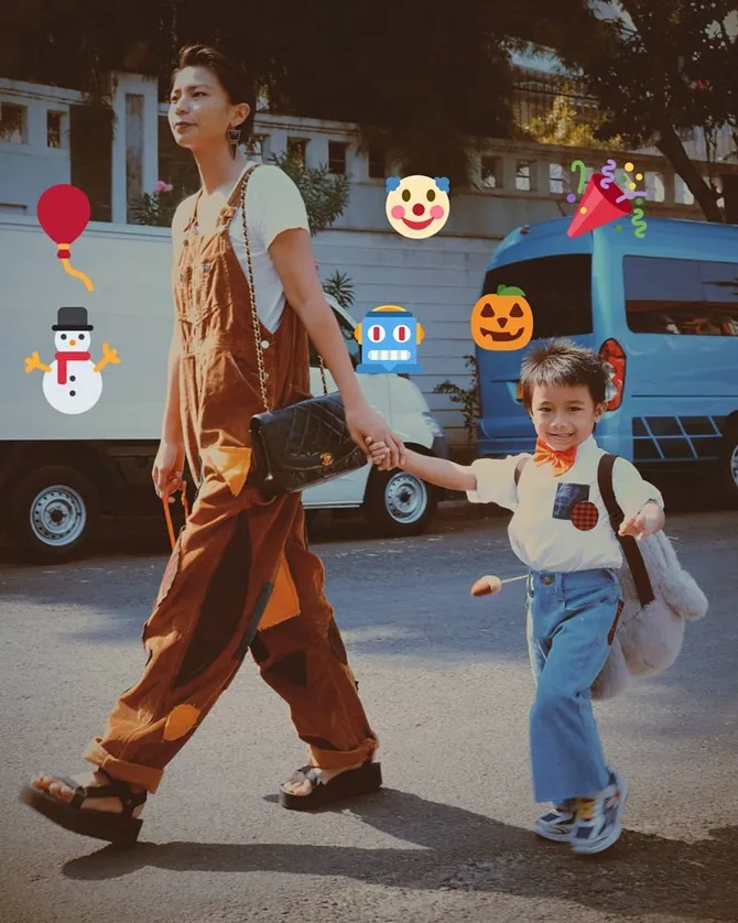 Rupanya ketika itu Daanish sedang berjalan buat mengantar sang anak, Matahari aka Pendul bagi berangkat sekolah. Terbayang kan kalau mengantar anak sekolah saja sekece ini, apalagi kalau hadir ke acara besar?