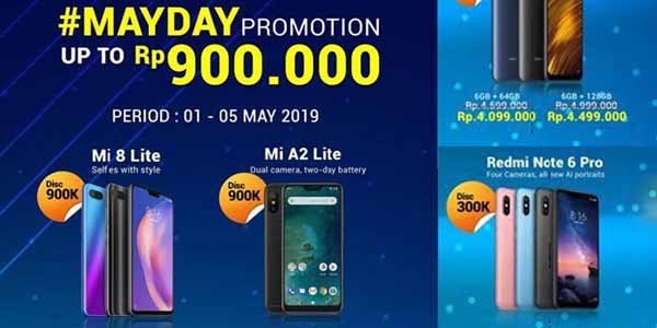 Mengusung tema #MAYDAYPROMO, Xiaomi memberikan potongan harga hingga Rp. 900.000 akan dari tanggal 1-5 Mei 2019 buat pembelian smartphone melalui situs resmi Xiaomi, Mi.com, dan semua Authorized Mi Store di Indonesia.