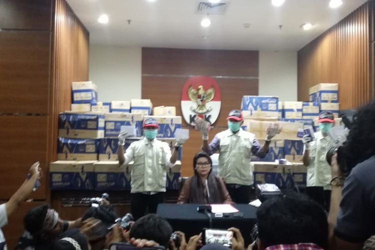 “Tim bergerak menuju ke sebuah kantor di Jakarta buat mengamankan uang sekitar Rp 8 miliar dalam pecahan Rp 20 ribu dan Rp 50 ribu yg sudah dimasukkan dalam amplop-amplop pada 84 kardus,” kata Wakil Ketua KPK Basaria Panjaitan dalam konferensi pers di Gedung Merah Putih KPK, Jakarta, Kamis (28/3/2019).