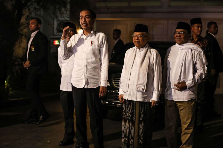 JAKARTA, – Calon presiden petahana Joko Widodo dan calon wakil presidennya Kiai Haji Ma’ruf Amin bersama-sama menonton siaran segera sidang putusan perselisihan hasil Pilpres 2019 melalui layar televisi.