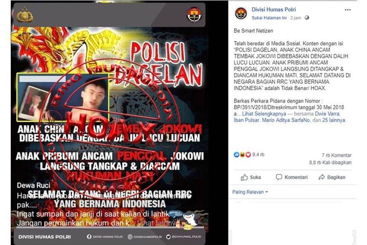 Unggahan tersebut hingga Senin (13/5/2019) sore sudah dibagikan lebih dari 7.000 kali dan mendapatkan ratusan komentar warganet.