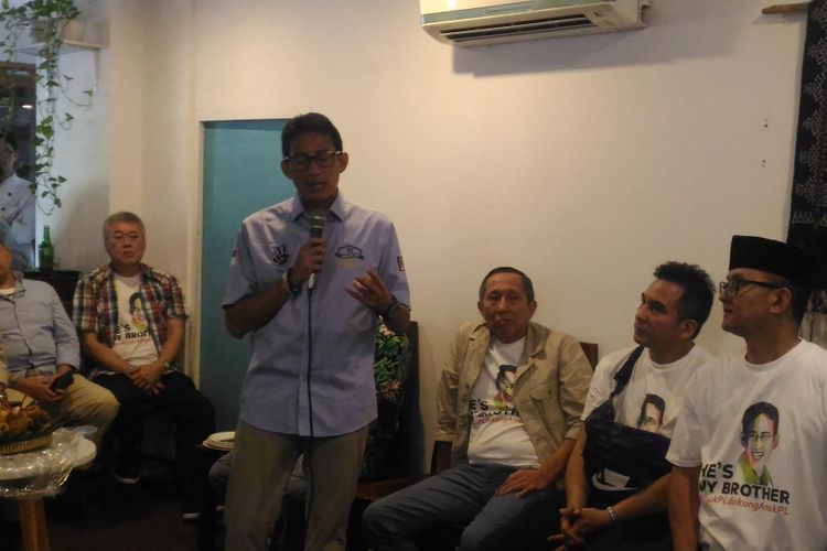 “Ini bukan acara tandingan. Ini acara di mana aku diberi masukan oleh alumni Pangudi Luhur (PL) yg menjadi pakar-pakar menjelang debat kedua dan debat ketiga pilpres. Jangan kami tanding-tandingkan dan mencemooh pasangan calon lain,” ujar Sandiaga di sebuah kedai di kawasan Jakarta Selatan, Rabu (13/2/2019).