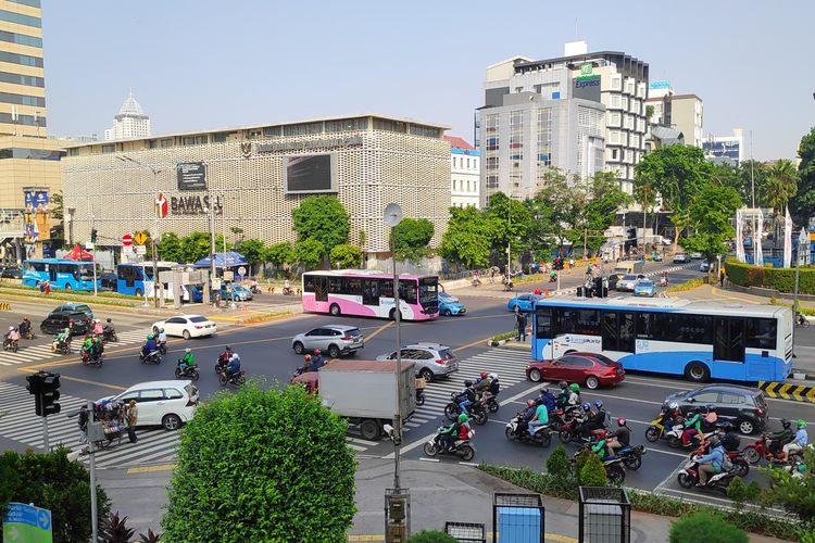 Belum seluruh wilayah yg masuk ke dalam  kawasan yg diawasi CCTV dalam program tilang elektronik atau electronic traffic law enforcement (ETLE) dipasangi rambu pendahulu petunjuk jurusan (RPPJ) tilang elektronik. Pantauan , dari empat lokasi penerapan tilang elektronik, baru persimpangan Sarinah dan Bundaran Senayan yg sudah dipasangi RPPJ. Sementara beberapa wilayah lainnya merupakan Bundaran Patung Kuda dan simpang Harmoni belum kelihatan adanya RPPJ, Selasa (2/10/2018)./DAVID OLIVER PURBA Belum segala wilayah yg masuk ke dalam kawasan yg diawasi CCTV dalam program tilang elektronik atau electronic traffic law enforcement (ETLE) dipasangi rambu pendahulu petunjuk jurusan (RPPJ) tilang elektronik. Pantauan , dari empat lokasi penerapan tilang elektronik, baru persimpangan Sarinah dan Bundaran Senayan yg sudah dipasangi RPPJ. Sementara beberapa wilayah lainnya merupakan Bundaran Patung Kuda dan simpang Harmoni belum kelihatan adanya RPPJ, Selasa (2/10/2018).
