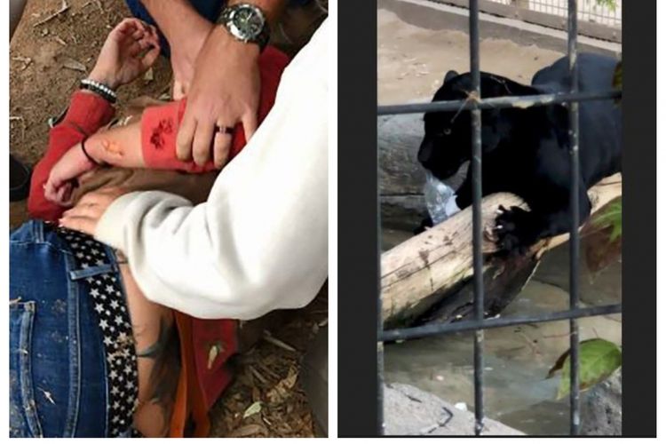 Melihat tangan wanita tersebut dicakar, ibu Adam sontak melemparkan botol minum ke dalam kandang dan sang jaguar pun akhirnya melepas tangan wanita malang itu.